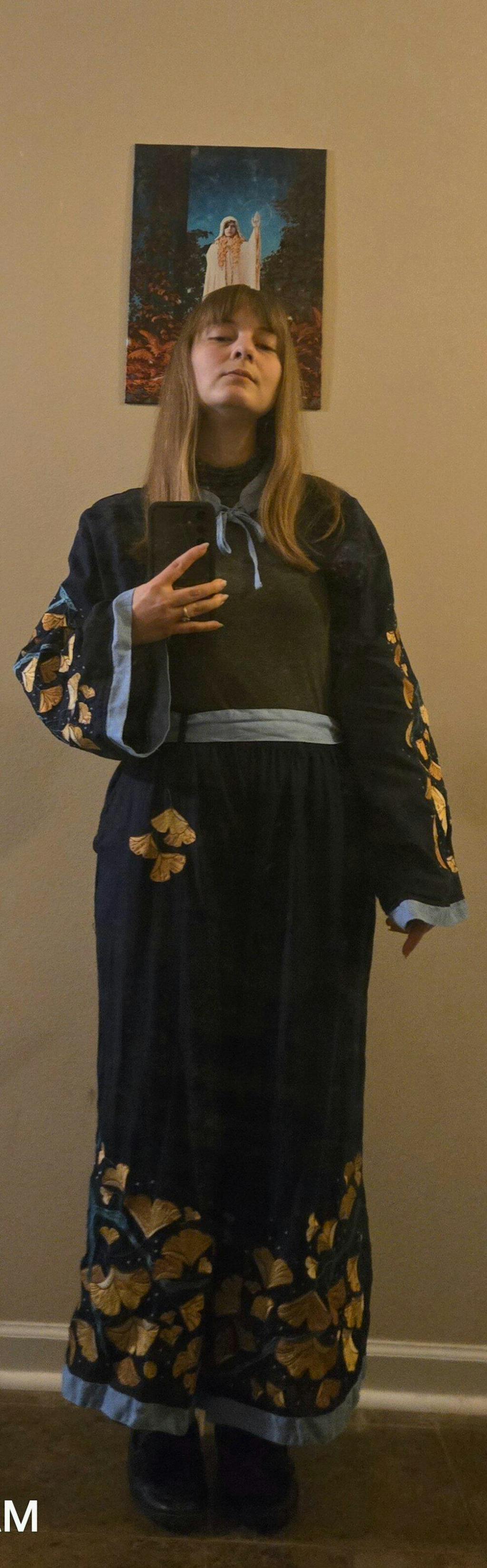 The photos do not do it justice. The inside is lined so the cloth feels nice against your skin. The embroidery is nice and vibrant. I did have to move around the collar around a little to get it into position but once set i didnt have any problems with it around my neck area.