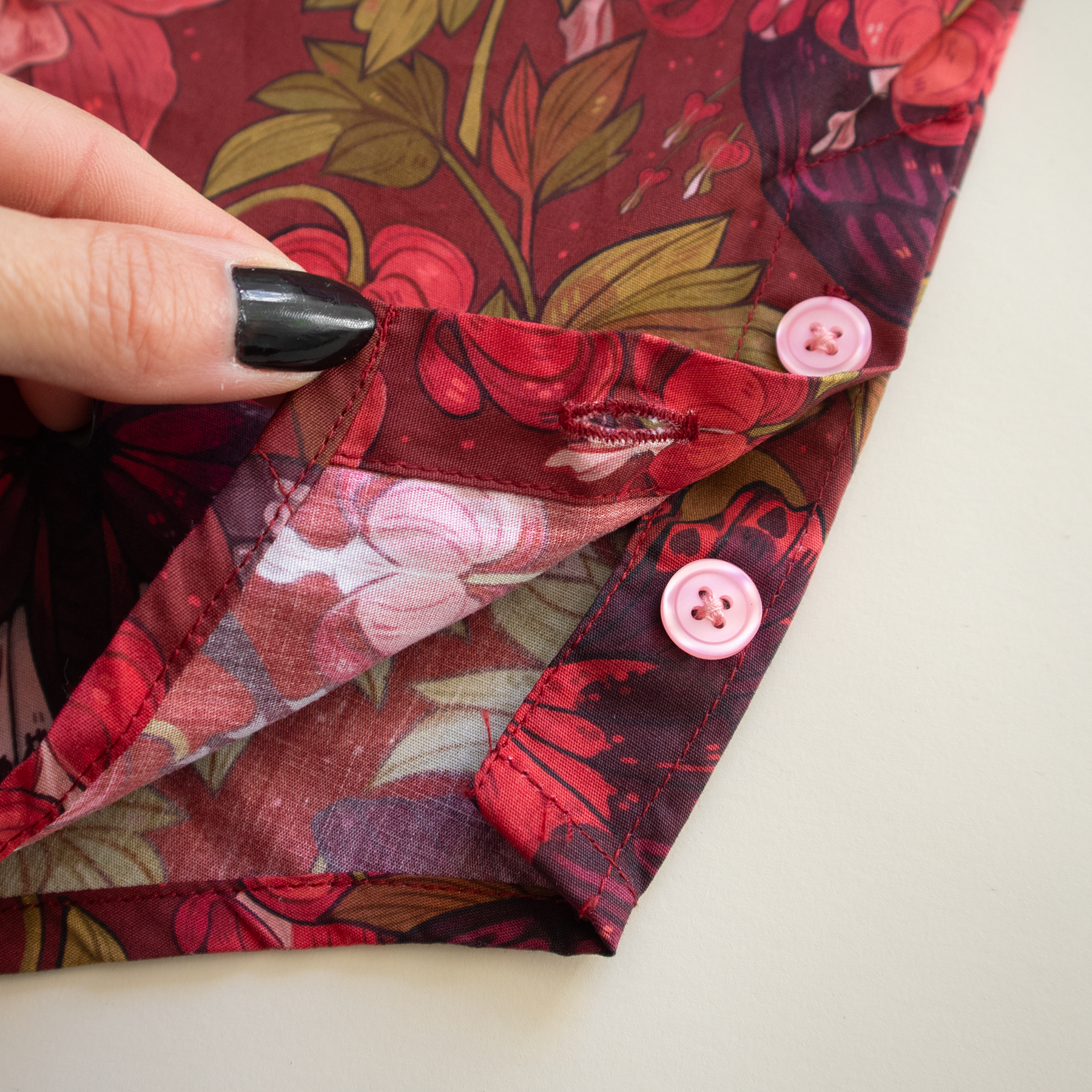 Please note that the fabric can feel stiff to some people right out of the bag - it will soften up immensely as you wear it! Washing the shirt inside out on a cold setting with a good softener can also help speed up the process. Please hang to dry if possible - drying with heat can lead to the print fading prematurely and shrinkage.